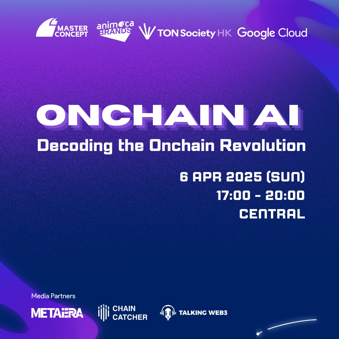 Organized by TON Society, Google Cloud, Animoca Brands, and Master Concept, the event will convene top thinkers and builders across blockchain, artificial intelligence, and digital infrastructure to explore the fast-growing frontier of decentralized AI models, data ownership, and the onchain AI stack.