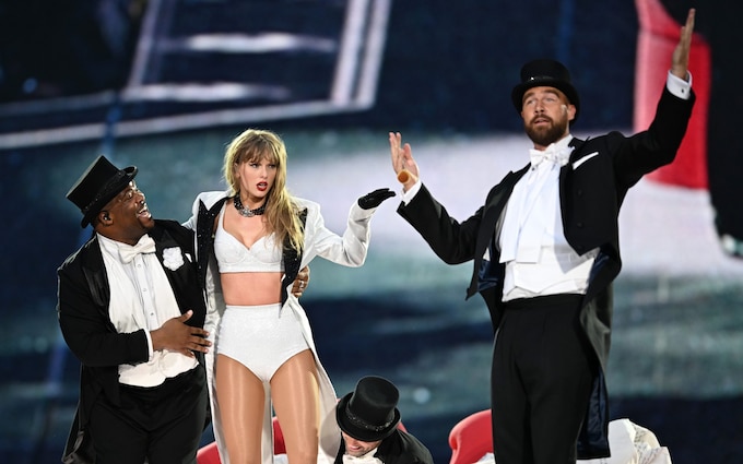 To the delight and astonishment of nearly 90,000 fans packed into Wembley Stadium,Taylor Swift has been joined on stage by her American footballer boyfriend,Travis Kelce.