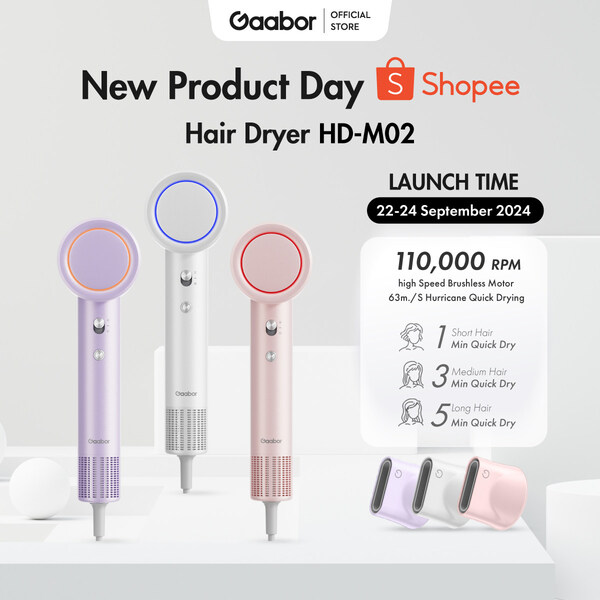 Recognizing that Gaabor's new products are creating a huge buzz on Thailand's social media and the positive response from fans as well as the great outcry,Gaabor is excited to join hands with Shopee to launch the "Gaabor HD-M02×Shopee New Product Day" event from September 22nd to 24th. During this special sales campaign,Gaabor will exclusively debut the M02 hair dryer on the Shopee platform,offering the biggest promotional policy for fans. Consumers can purchase the M02 high-speed hair dryer,originally priced at 3999฿,for a limited-time promotional price of 1???฿—a 65%+ discount! Additionally,an extra magnetic nozzle will be included. This event is expected to be highly sought after by Thai consumers.