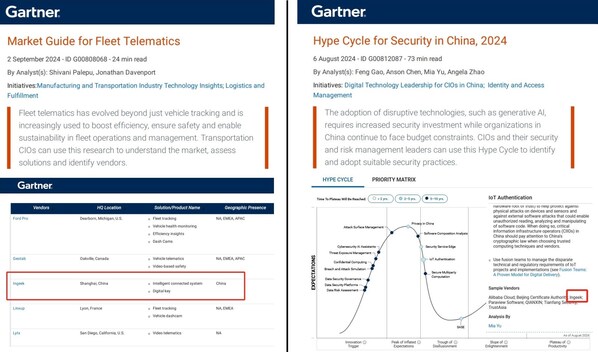 INGEEK Recognized in 2024 Gartner Market Guide for Fleet Telematics and 2024 China Hype Cycle for Security