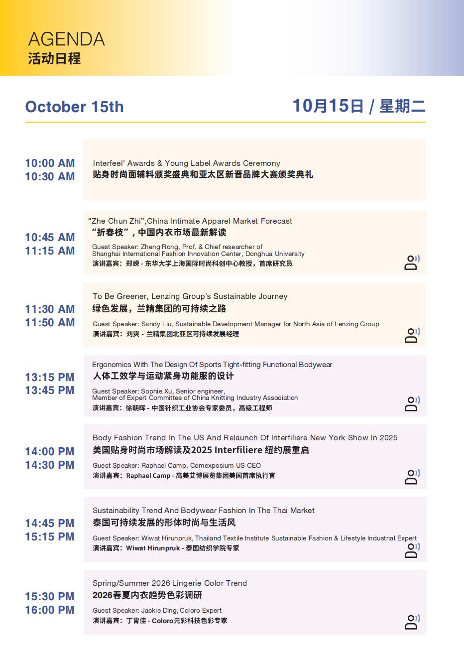 Interfiliere Shanghai 2024 is to be featured with a number of campaigns, such as 2026 spring and summer vogue trends, prototype fashion shows, green planet, renowned university-industry cooperation, COLORO-Yuancai cooperation, Interfeel 'AWARDS ceremony, high-quality meetings and forums, business and trade matchmaking meetings, Interfiliere Shanghai× Sportsinnov. Club Private Sharing, Interfiliere Shanghai's 20th Anniversary Cocktail Club, and various trend releases. In addition, more than 10 industry big names are to talk about hot topics in the underwear fashion industry. Well-known underwear brands, sportswear brands, swimwear brands, home clothing brands, etc. both at home and abroad are to be integrated into one of the main target markets for Interfiliere Shanghai by virtue of the concept of underwear fashion in a broad sense to expand the scope of buyers so as to achieve the purpose of expanding market channels and enhance the effect of Interfiliere Shanghai as an exhibition event. In the meantime, business development will be accelerated by creating exhibition scenes to help enterprises enhance the influence of their brands in the market both in China and abroad.