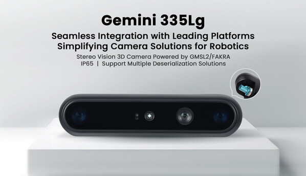 ODENSE,Denmark,Oct. 21,2024 --Orbbec,a global leader in 3D vision systems,announced the launch of the Gemini 335Lg Stereo Vision 3D Camera at ROSCon 2024. As the latest addition to the Gemini 330 series,the Gemini 335Lg utilizes advanced Gigabit Multimedia Serial Link 2 (GMSL2) and a FAKRA connector,ensuring secure and reliable connectivity for autonomous mobile robots (AMRs) in fulfillment centers,warehouses,and factories,as well as for robotic arms in complex tasks such as bin-picking and palletizing/de-palletizing.