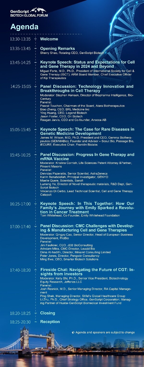 In this November 20,GenScript Biotech Global Forum will take place in London during the Jefferies London Healthcare Conference. This year's forum will explore the theme "Unlock the Full Potential of Cell and Gene Therapies." This event aims to foster collaboration among industry leaders while tackling the challenges and opportunities in the CGT landscape.