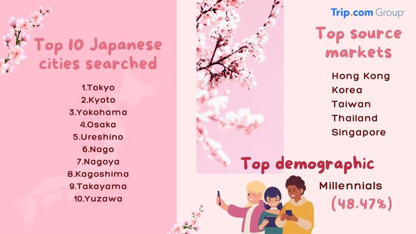 The "big three" cities like Tokyo,Osaka,and Kyoto continue to be favourites,with Trip.com Group revealing triple-digit booking growth year-on-year during the sakura season. Of popular cities,Sendai,Kanazawa and Aomori also reflected the most year-on-year growth during the season.