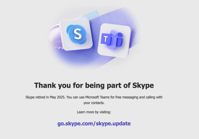 It said: ‘Skype retired in May 2025. You can use Microsoft Teams for free messaging and calling with your contacts.’