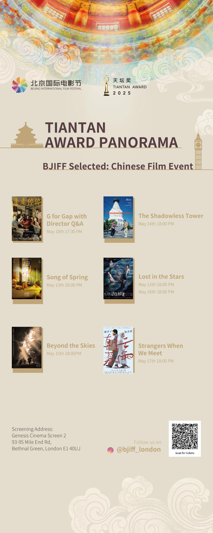 From May 10 to 17, the “Tiantan Award Panorama · London”, jointly organized by the China Film Administration and the Organizing Committee of the Beijing International Film Festival (BJIFF), was successfully held in the United Kingdom. The week-long screening featured six widely acclaimed Chinese films from recent years, covering multiple genres such as family, thriller, realism, and poetry. The featured films included G for GapSong of SpringThe Shadowless TowerBeyond the SkiesStrangers When We Meet, and Lost in the Stars. These stories, originally from faraway Eastern lands, attracted many local viewers and Chinese residents in the UK in London cinemas. Despite differences in language and background, emotional connections remain universal. As the distance between people narrowed in the light and shadow of cinematic imagery, understanding unfolded subtly.