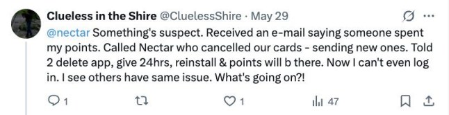 Some shoppers contacting Nectar online said their points had been spent while they weren’t even in the UK,while others said they were having problems with the app and ‘can’t even log in’.