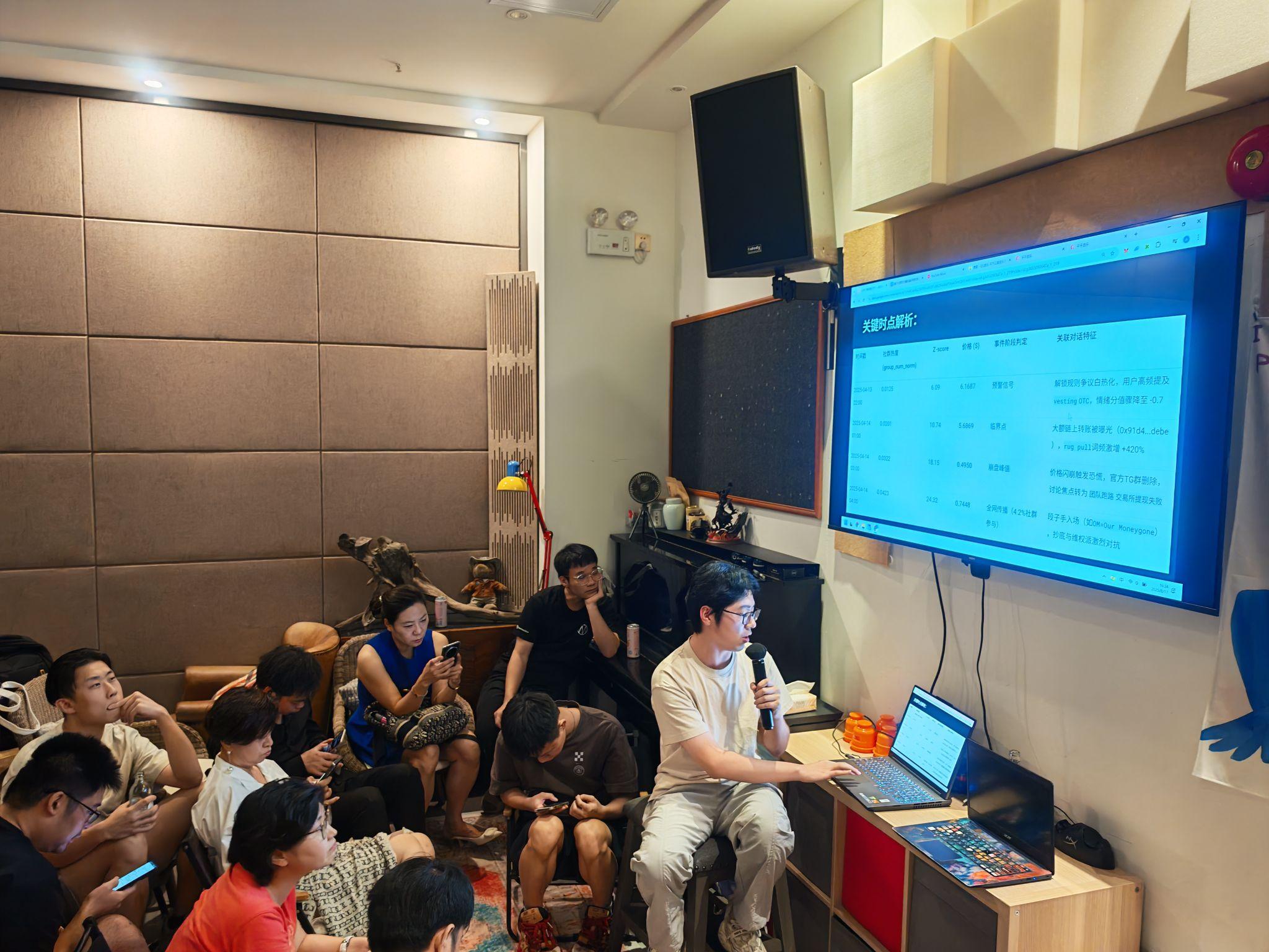 With strictly limited attendance, Cryptoracle Co-founder and CMO Sam extended targeted invitations only to partners of quantitative teams and investment institutions managing over USD 10 million. During three hours of in-depth discussions, the Cryptoracle team gave its first systematic presentation of its market consensus sensing system built on private data and AI agents:
