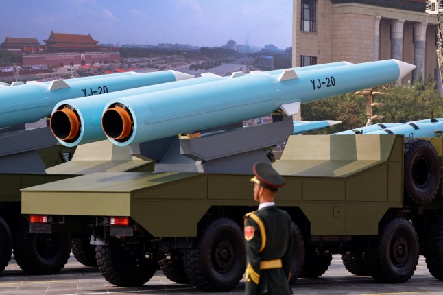 Hypersonic anti-ship missiles – which China has previously tested against mock-ups of US aircraft carriers – were also paraded.