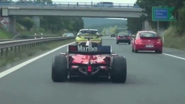 Police had received reports of a racing car seen at petrol station near Dobříš and followed him along the D4 motorway until he reached his property.